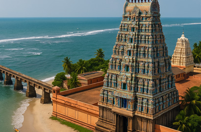Visit the holy island, take a sacred bath at Agni Theertham, and receive blessings at Ramanathaswamy Temple.